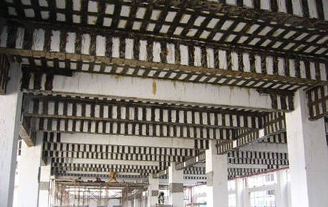 En raison de l'augmentation de la capacité portante du toit et du renforcement sismique, il est nécessaire de renforcer la poutre du cadre et le plancher avec du tissu en fibre de carbone et une plaque d'acier.