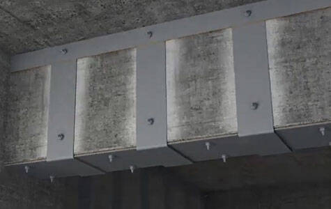 La plaque d'acier est collée à la surface des éléments en béton à l'aide de colles époxy hautes performances, de sorte que la plaque d'acier et le béton forment un tout. La bonne résistance à la traction de la plaque d'acier renforce la capacité portante et la rigidité des composants.