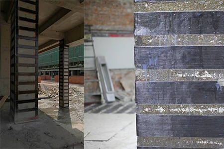 La méthode de renforcement par bande/plaque/stratifié en PRFC précontraint convient au renforcement des éléments en béton armé soumis à la flexion, à la tension et à une grande excentricité lorsque la section est petite ou que le renforcement est insuffisant.