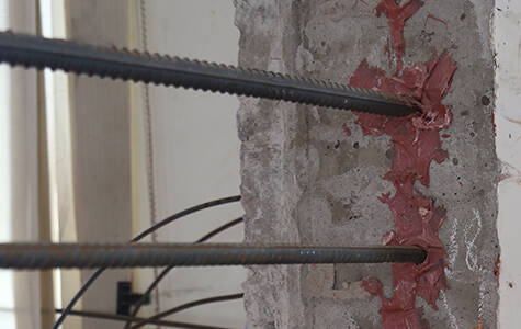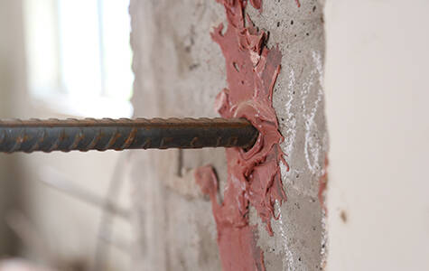 L'implantation de barres d'armature consiste à percer le béton, les parois rocheuses et autres substrats, puis à injecter un adhésif d'ancrage haute résistance. Ensuite, une barre ou un profilé d'acier est inséré, puis collé au matériau de base. Il s'agit d'une technique de renforcement structurel courante.