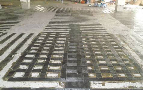 De plus, le tissu FRP est collé au bas du sol avec un certain espacement, de sorte que certains sols sont recouverts de FRP, tandis que d'autres ne le sont pas.